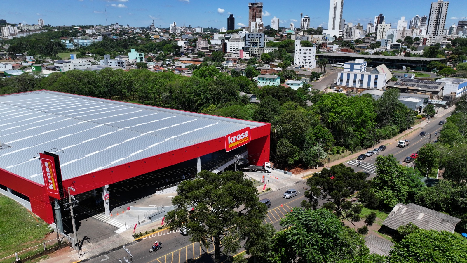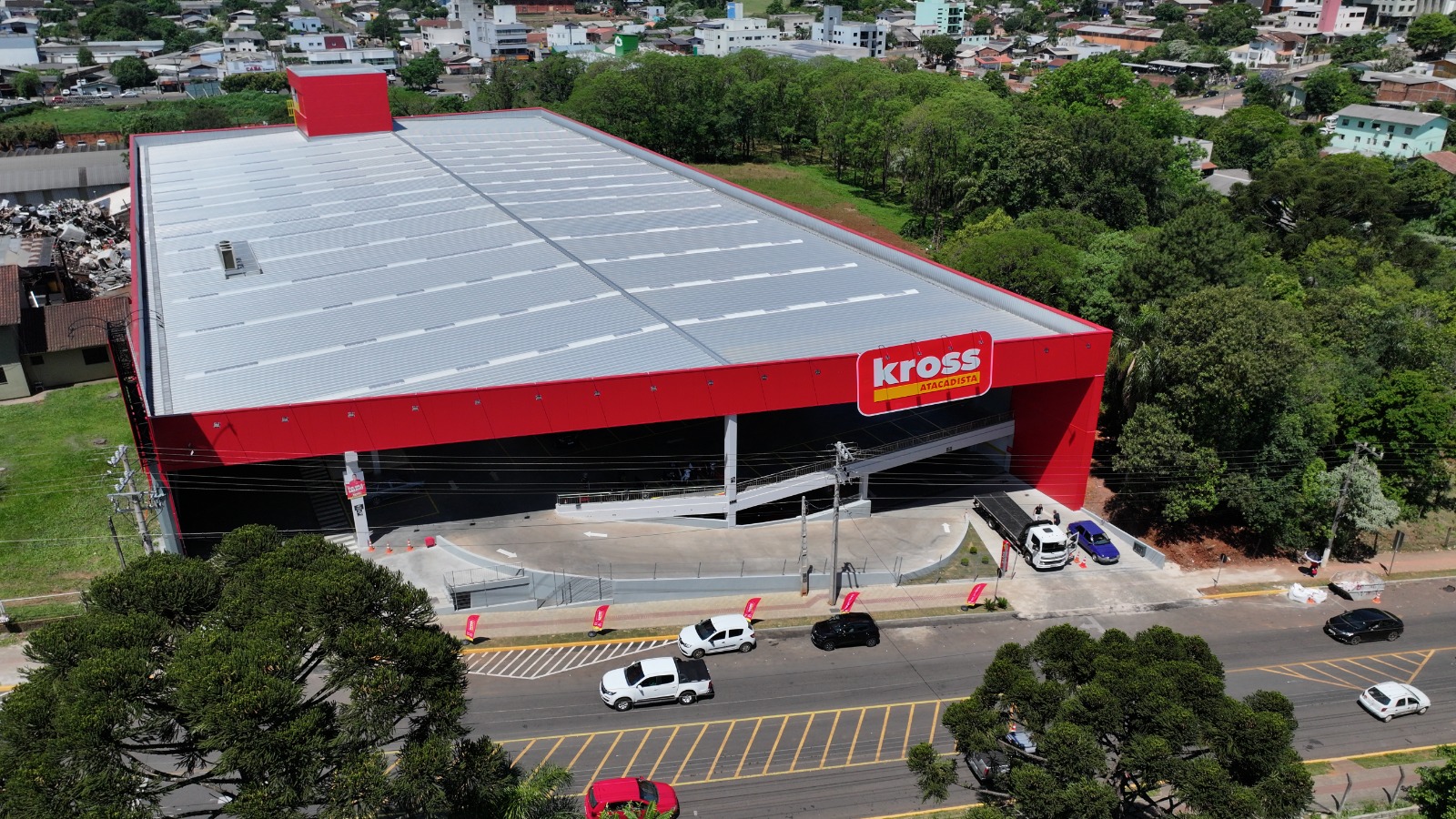 Execução de obra para supermercado na modalidade atacadista, incluindo fundações, contenções, rampa de acesso, sistemas de drenagem, instalações hidráulicas e pluviais, além de acabamentos gerais. A edificação foi executada com estrutura pré-fabricada em concreto armado e cobertura metálica, garantindo agilidade construtiva, robustez estrutural e elevado desempenho operacional.