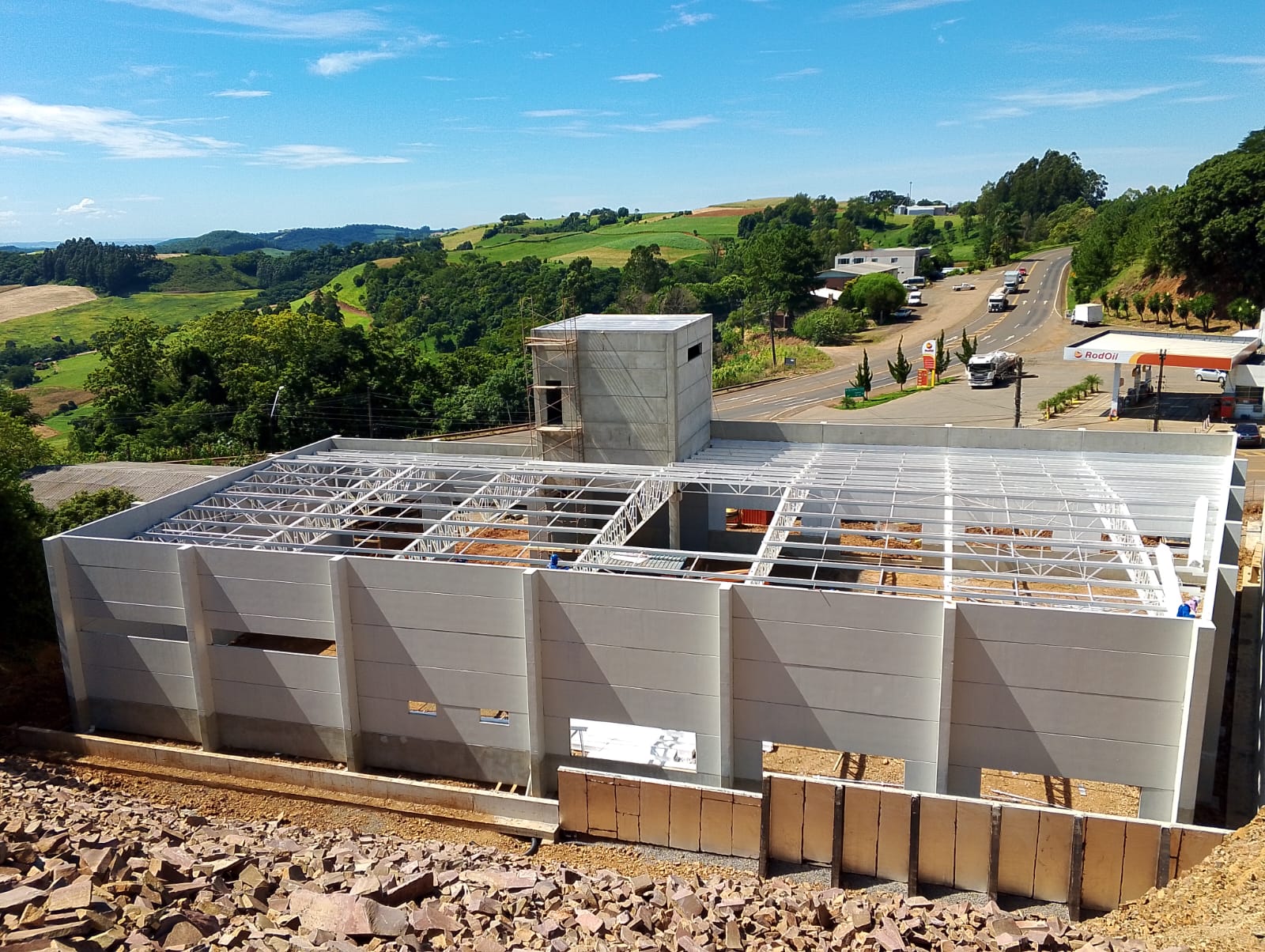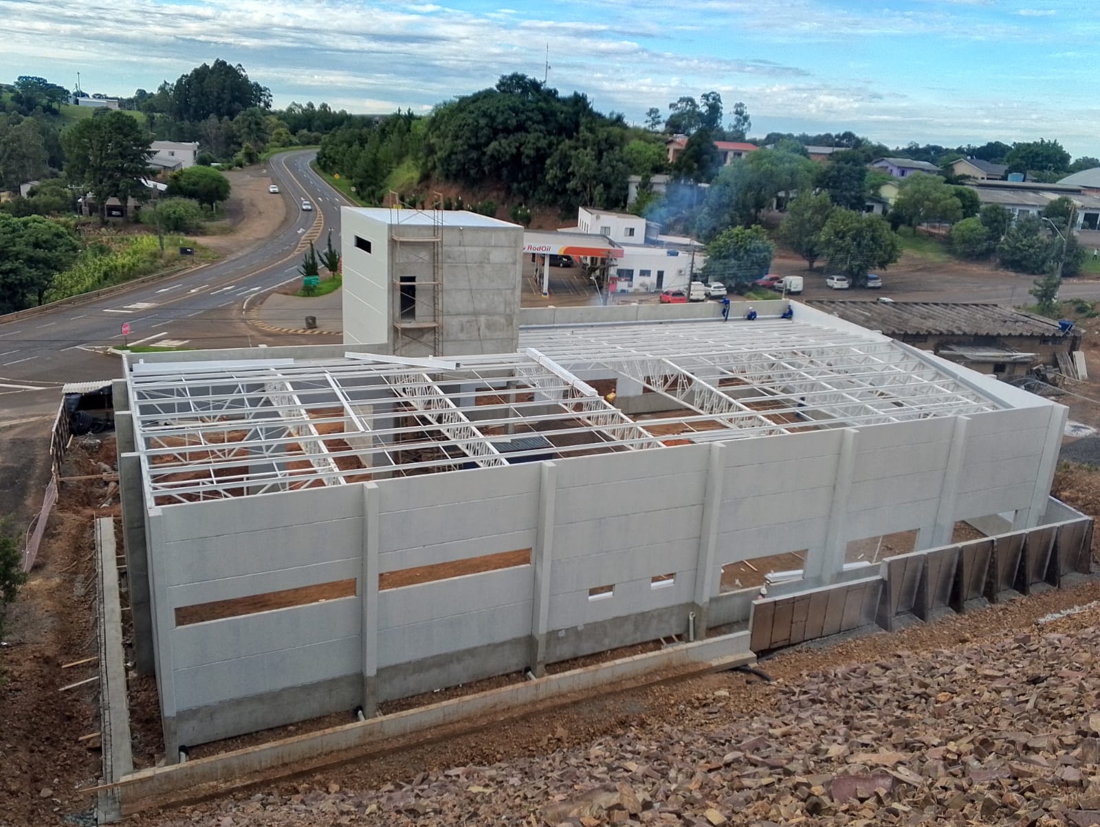 Execução do Supermercado e Loja Agropecuária da Cooperalfa, contemplando estrutura em concreto pré-fabricado e cobertura metálica. A obra incluiu fundações, pisos em concreto armado com acabamento lapidado, docas, piso externo, áreas administrativas, vestiários e depósitos.