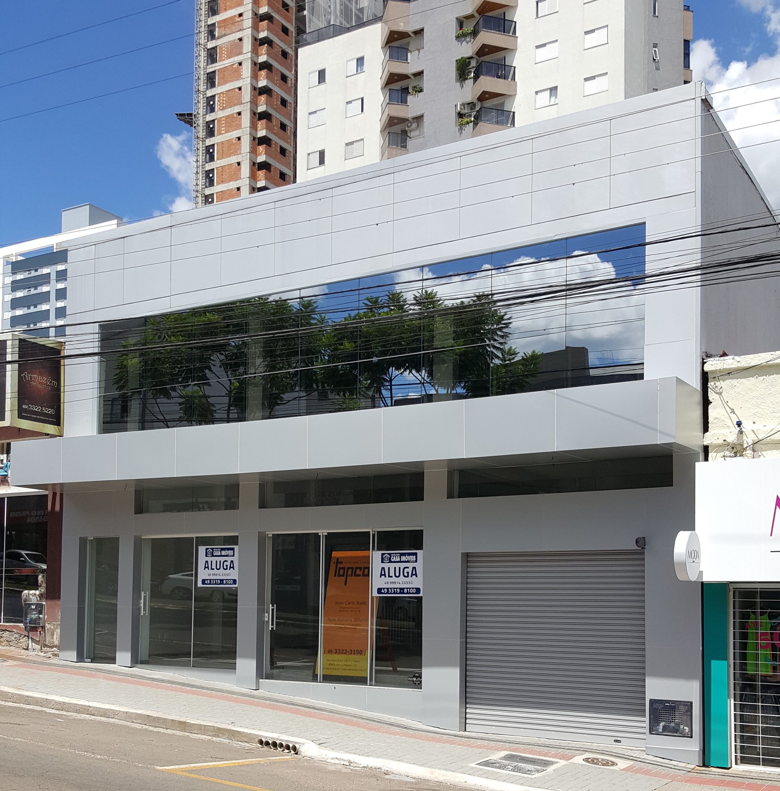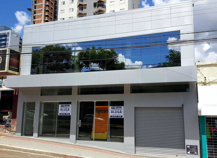 Reforma e ampliação de edificação comercial em dois pavimentos, contemplando fundações, estrutura em concreto armado moldado in loco, cobertura metálica, revestimentos, instalações e fachada em ACM e vidro.