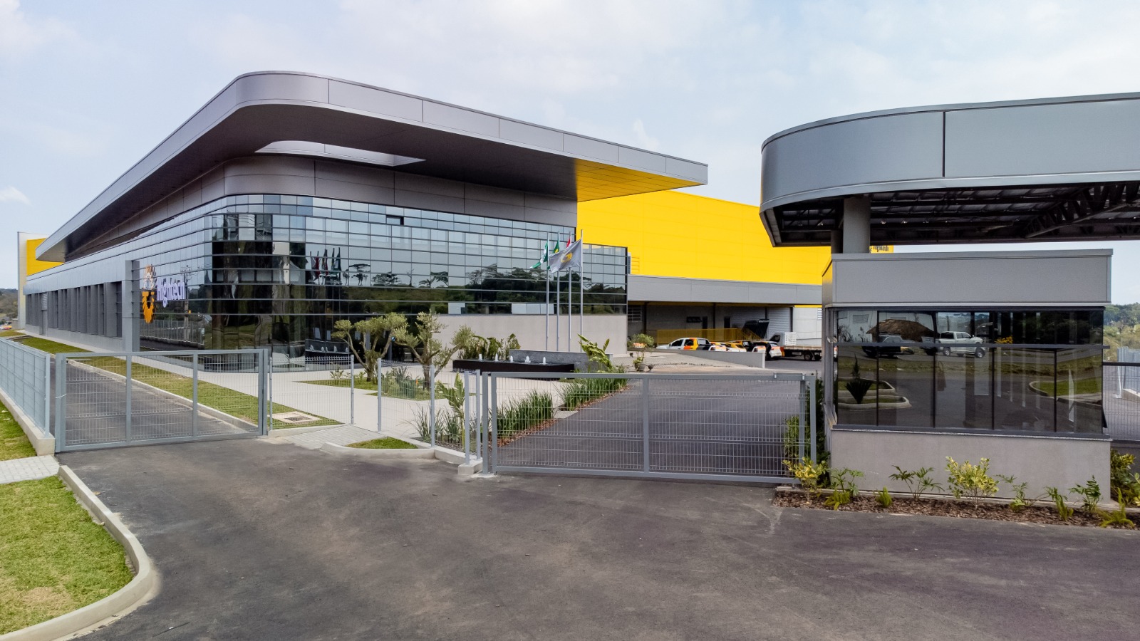 Execução de obra para empresa fabricante de máquinas industriais, contemplando área industrial, almoxarifado, setor de expedição, subestação de entrada de energia, áreas administrativas, guarita e demais instalações de apoio. A edificação foi executada com estrutura pré-fabricada em concreto armado e cobertura metálica, com acabamentos de fachada em ACM e glazing.