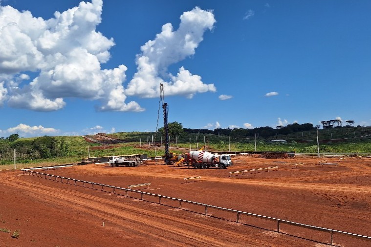 A edificação está sendo executada com fundações profundas, estrutura mista com concreto armado in loco e elementos pré-fabricados, cobertura e fechamentos metálicos. As demais etapas incluem alvenarias, revestimentos, instalações hidrossanitárias, drenagem do pátio externo e infraestrutura completa para operação fabril.
