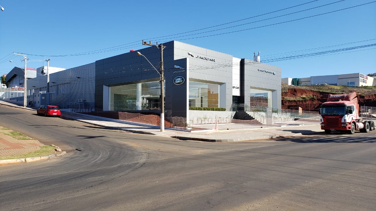 Execução de edificação destinada à revenda de veículos de luxo, contemplando área de vendas, oficina especializada, rampa de acesso e laje de cobertura destinada a estacionamento descoberto. A obra contou com estrutura pré-fabricada em concreto armado, edificada no município de Chapecó.