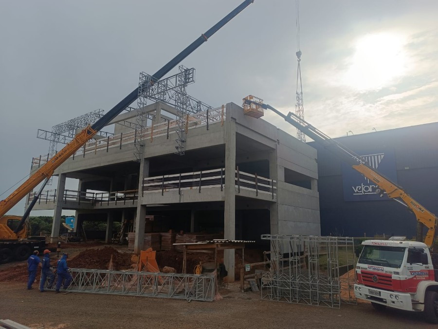 A edificação está sendo executada com estrutura pré-fabricada em concreto armado e cobertura metálica, incluindo divisórias leves e corporativas, revestimentos e instalações prediais, além de acabamentos de fachada em ACM e glazing, garantindo funcionalidade, conforto e identidade visual corporativa.
